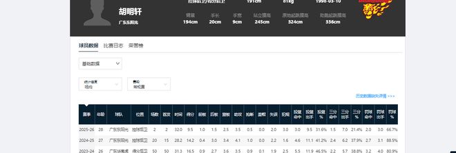 上赛季,胡明轩场均可为球队贡献14.2分3.4篮板4.1助攻,投篮命中率41.2%,三分命中率37.9%。本赛季2场过后,他的投篮命中率仅为31.6%,三分命中率更是低至21.4%。