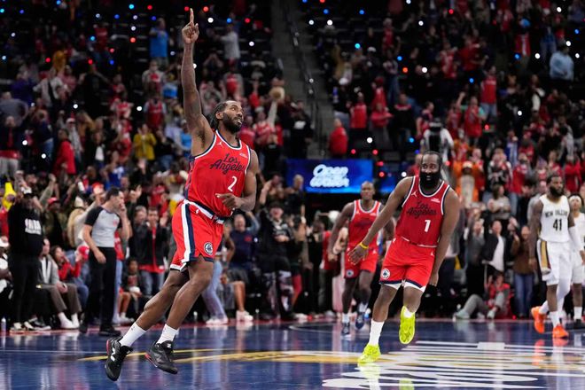 北京时间11月1日,NBA杯快船主场对阵鹈鹕,快船借助团队攻势压制鹈鹕,最多时刻取得17分领先优势。鹈鹕顽强反扑最后时刻追平比分,莱昂纳德压哨中投绝杀,最终快船126-124战胜鹈鹕,鹈鹕新赛季5战全败稳居西部倒数第一。莱昂纳德末节14分贡献压哨绝杀,全场34+5+5+6成为头号功臣。