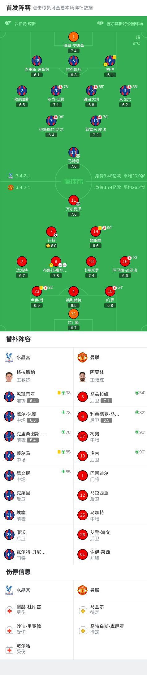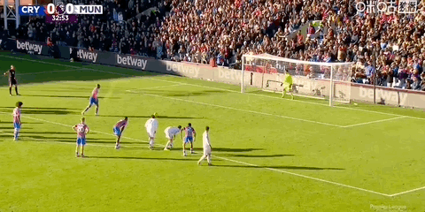 第33分钟,马特塔罚点球二次触球后重新主罚仍命中,水晶宫1-0曼联!