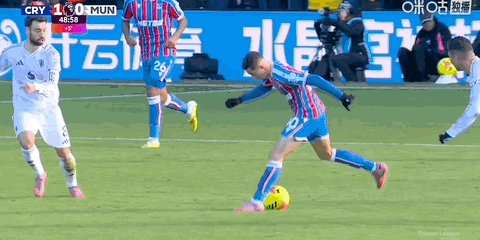 第25分钟,水晶宫打出快速反击,镰田大地的射门绵软无力被拉门斯没收