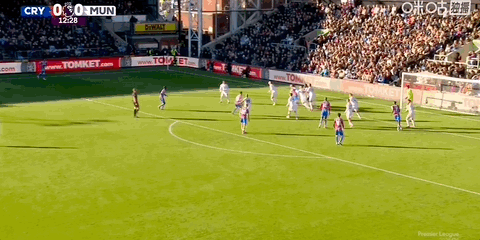 第54分钟,齐尔克泽小角度抽射打进个人赛季首球,曼联1-1水晶宫!